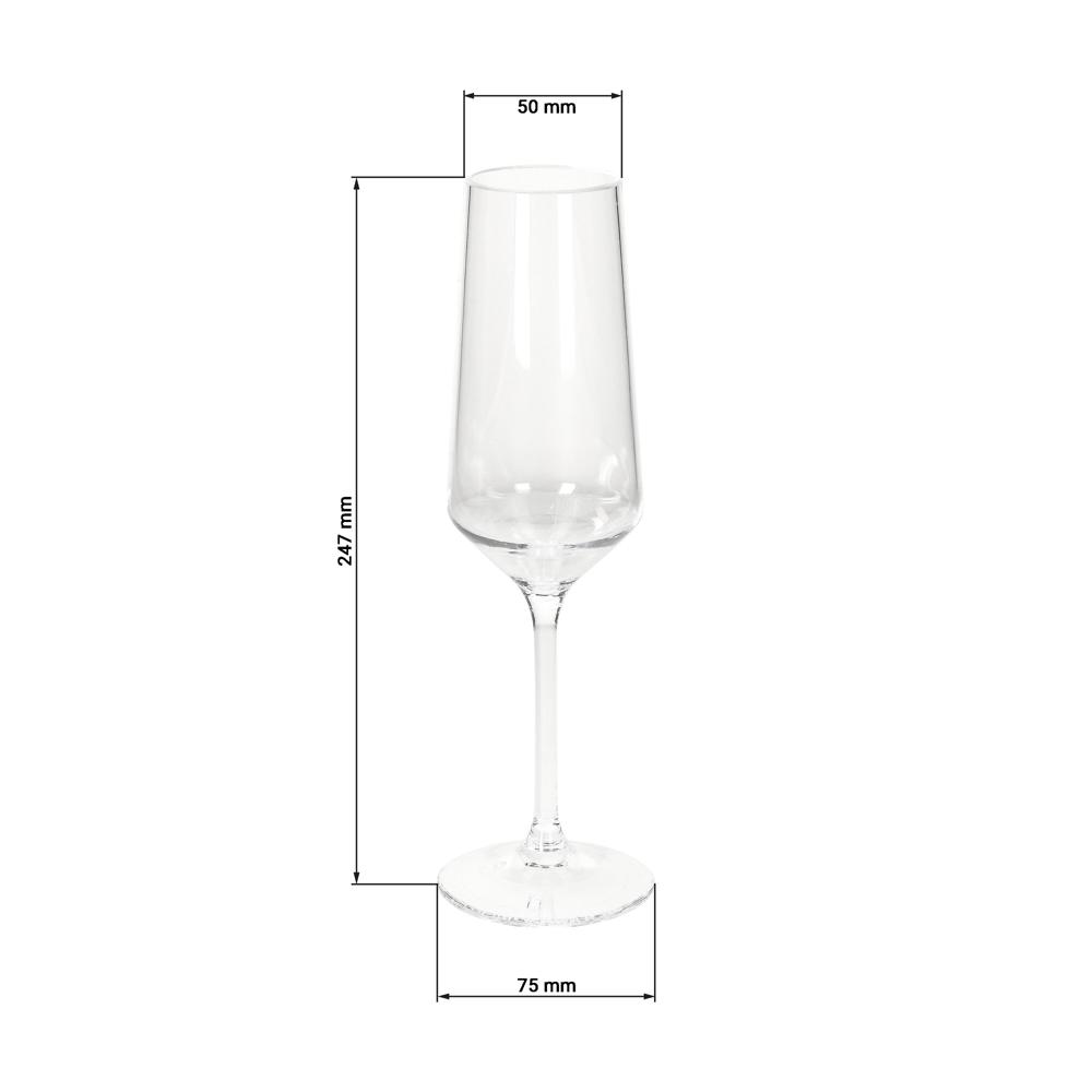 Das Sektglas "Vista" besticht durch sein stilvolles Design und das bruchsichere PMMA-Material. Es ist ideal für feierliche Anlässe und verleiht jedem Event einen eleganten Touch. Ob drinnen oder draußen – dieses Glas bietet die perfekte Kombination aus Ästhetik und Funktionalität, ohne auf Langlebigkeit zu verzichten. Spülmaschinengeeignet bis 50°C. Füllvolumen: ca. 240 ml