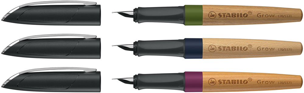 NACHHALTIGKEIT TRIFFT DESIGN. Füllfederhalter mit Schaft aus 100% FSC-zertifiziertem Echtholz und ergonomischem Griffstück. 3 verschiedene Holz- und Farbkombinationen, einzigartig durch die individuelle Farbe und Maserung jedes Holzschaftes. Mit Tintenpatrone in Royalblau, nachfüllbar mit Standard-Patronen, und hochwertiger Stahlfeder mit Iridiumkorn. Gegen Aufpreis auch erhältlich in einer Einzelverpackung aus KraftPak in brauner Karton-Optik.