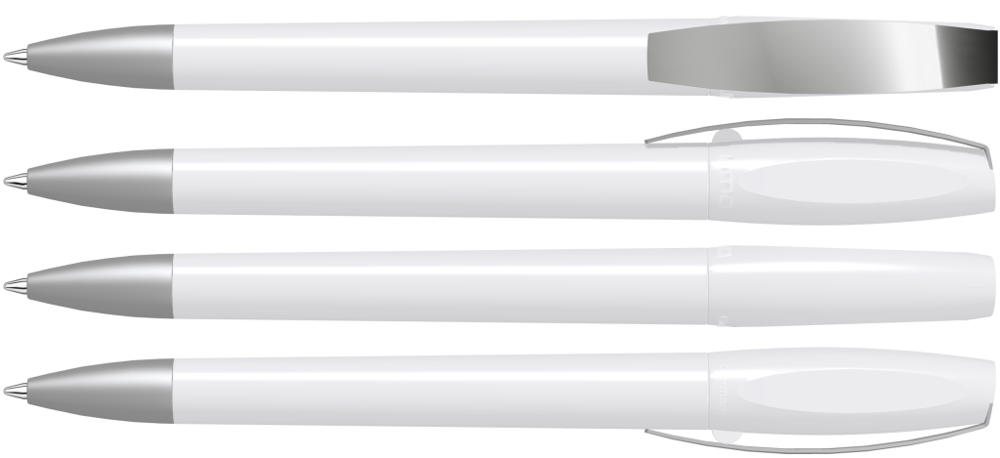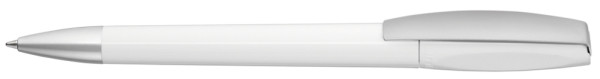 Drehkugelschreiber mit gedeckt glänzendem Gehäuse. Metallclip und schwere Metallspitze matt verchromt.