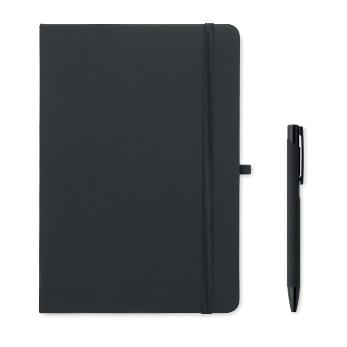 3-teiliges Geschenkset: DIN A5 Notizbuch, Kugelschreiber aus recyceltem Aluminium, doppelwandiger Becher aus recyceltem Edelstahl mit PP-Deckel (350 ml). Lieferung in Geschenkbox.