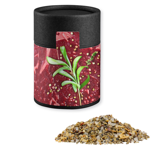 Gewürzmischung Kräuter-Steakgewürz, ca. 45g, Kraftpapierdose Midi schwarz