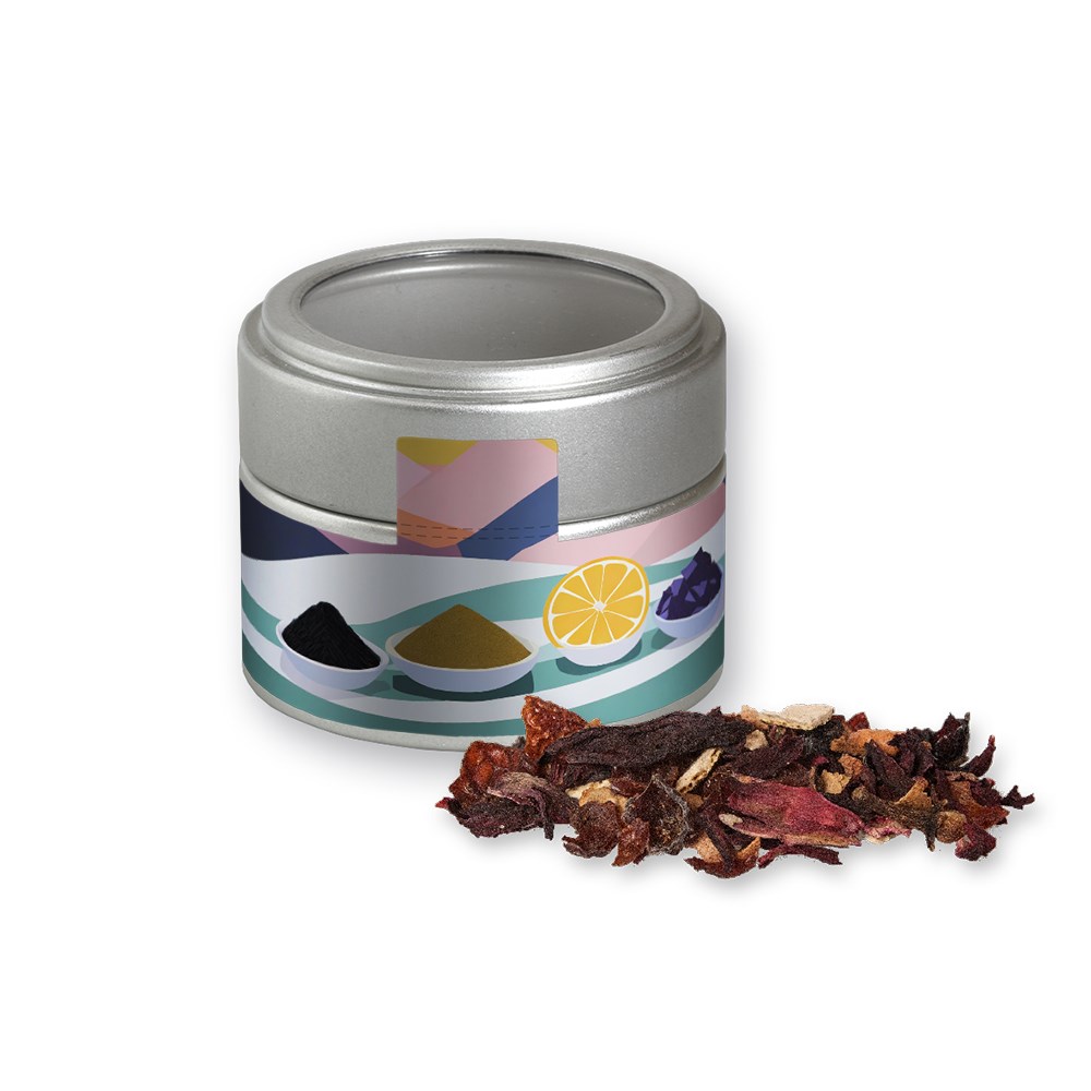 Weihnachts Früchtetee, ca. 30g, Metalldose Mini mit Sichtfenster silber