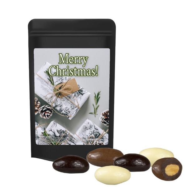 Mandel-Schoko-Trio, ca. 30g, Standbeutel Mini schwarz