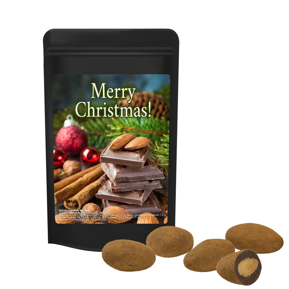 Schokomandeln mit Zimt, ca. 30g, Standbeutel Mini schwarz