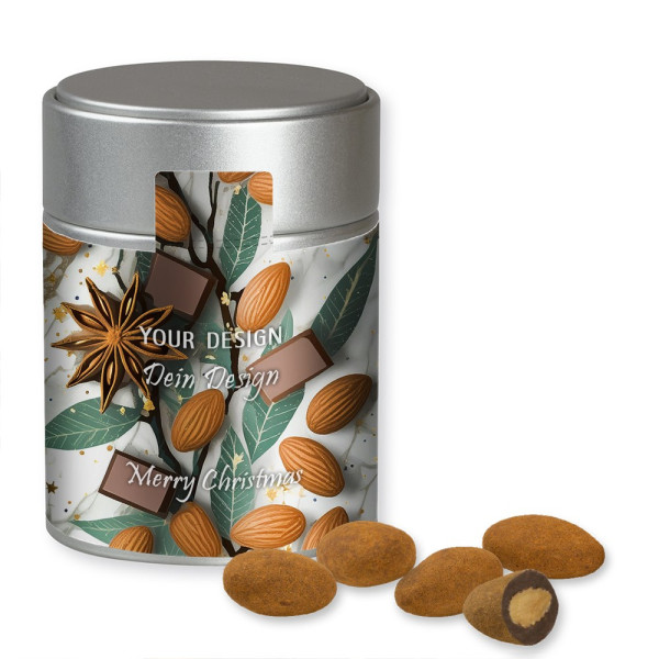 Schokomandeln mit Zimt, ca. 100g, Metalldose Midi silber