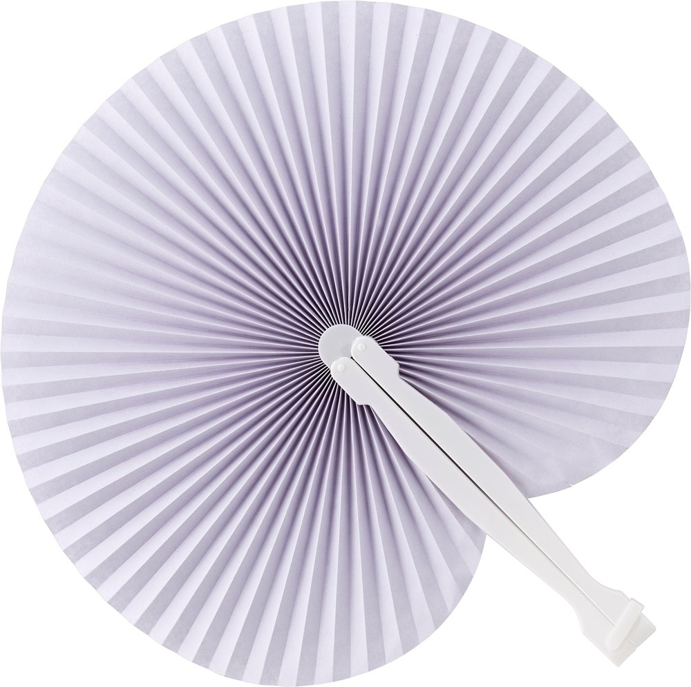 Fächer aus Kunststoff, faltbar, mit weißem Griff.