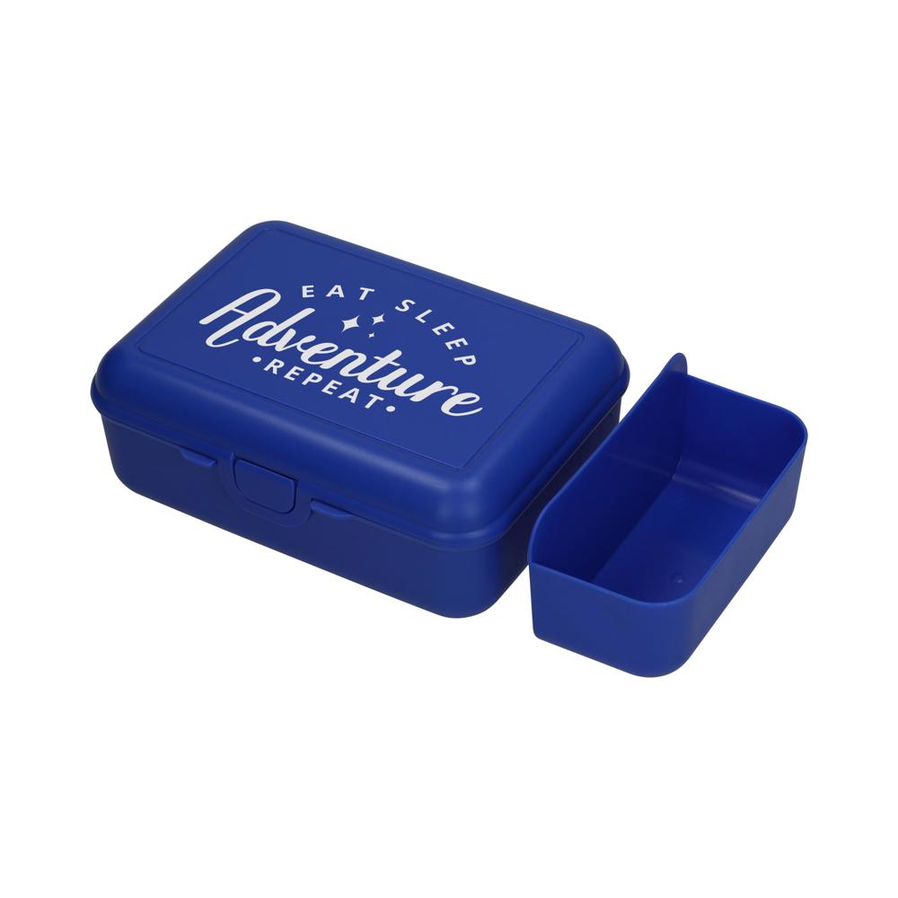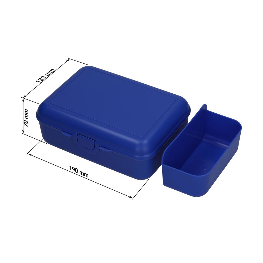 Die luxuriöse Box. Sehr geräumige Vorratsdose aus PP mit Klickverschluss und herausnehmbarer Schale, die unterschiedliche Lebensmittel bei der Aufbewahrung und dem Transport voneinander getrennt hält. Die Oberseite ist perfekt für eine Veredelung per IMould-Verfahren geeignet.