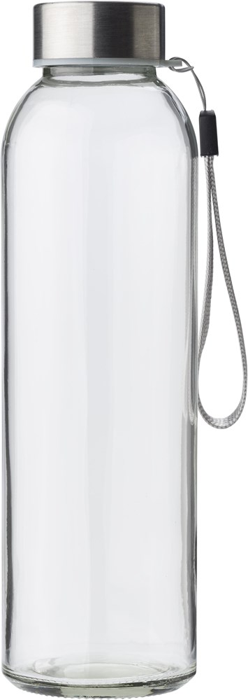 Trinkflasche (ca. 500ml) aus Glas mit Neopren-Schutzhülle. Nur für kalte Getränke geeignet.