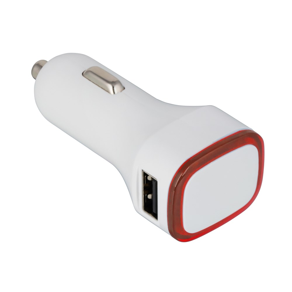 Der intelligente 2-in-1-Autoladeadapter ist für PKW und LKW anwendbar. Mit einer Ausgangsleistung bis zu DC 5V und 3.1A (bei Anschluss auf zwei Geräte verteilt sich die Leistung auf beide). Die intelligente Ladesteuerung weiß genau, wie viel Strom Ihr Gerät zum Laden benötigt. Das integrierte Schutzsystem bewahrt vor Überspannung, Überhitzung und Kurzschluss. Der umlaufende Farbring an der Werbefläche wird per LED hinterleuchtet.