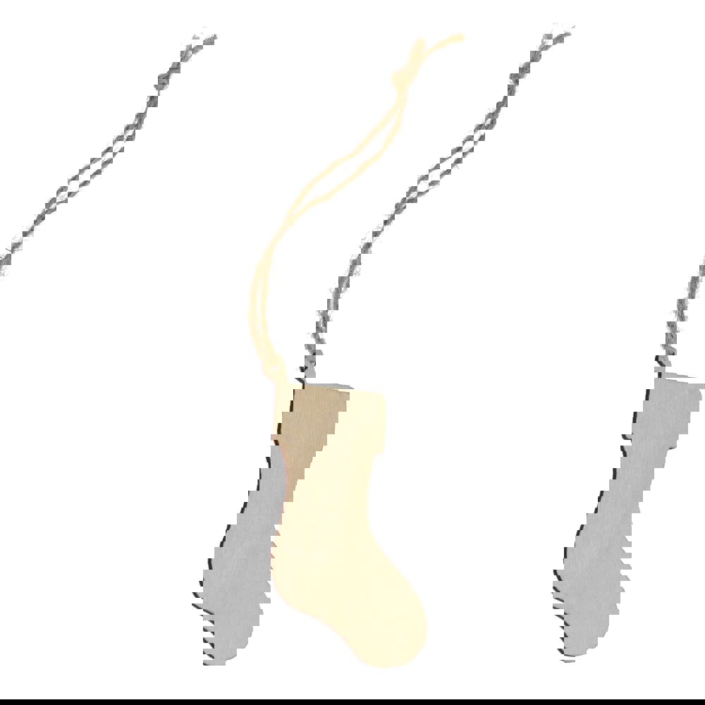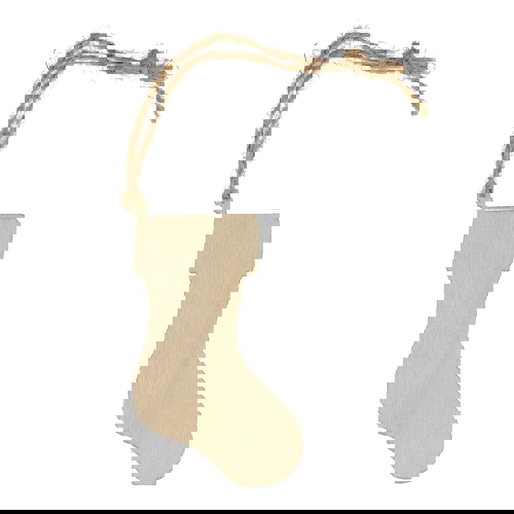 Feiern Sie die Saison mit diesem charmanten Holzornament in Strumpfform. Die klassische Form und der großzügige Platz für das Branding machen es perfekt für die Personalisierung, um ein einzigartiges Andenken an die Feiertage zu schaffen und ein durchdachtes Geschenk zu machen. Ideal für die Dekoration von Weihnachtsbäumen, Kränzen oder festlichen Auslagen.