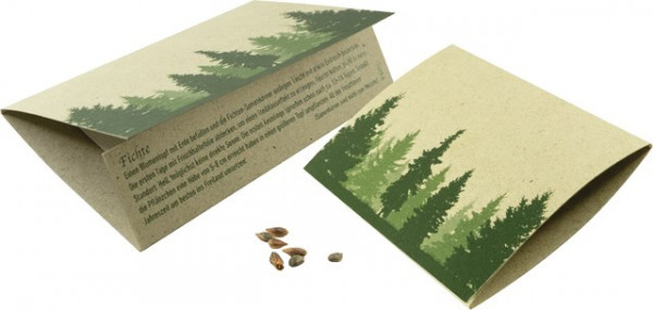 Das trendige Graspapier-Kärtchen mit den Fichten-Samen ist ein natürliches und sympathisches Giveaway in der Weihnachtszeit. Nutzen Sie das Klappkärtchen im Standardmotiv für Ihre Werbebotschaft oder, ebenfalls ab 250 Stück, für Ihre individuelle Gestaltung.