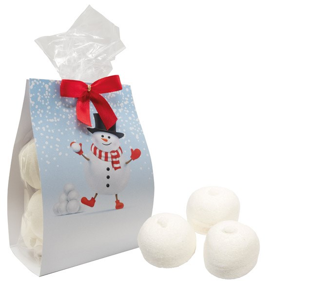 So ist die Winterzeit besonders schön: Nach der Schneeballschlacht dann daheim die süßen Schneebälle genießen. Entweder über dem Kaminfeuer geröstet, in heiße Schokolade getaucht oder einfach pur. Die Banderole bietet viel Platz für Ihren Werbeeindruck oder, ebenfalls ab 250 Stück, für eine individuelle Gestaltung.