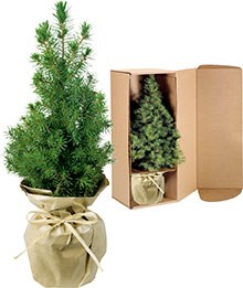 Eine lebende Zuckerhutfichte 20 - 30 cm, verpackt in einer Einzelversandkartonage, als kleines Bäumchen zu Weihnachten. Klassisch und dekorativ versetzt diese Zuckerhutfichte jeden Raum in eine weihnachtliche Stimmung. Das Bäumchen kann auf Wunsch von uns direkt an einzelne Empfänger versendet werden. Ganz natürlich wurde dieses Bäumchen nur mit Naturpapier und Bastband geschmückt. Ein Werbeeindruck kann auf unserem Anhängekärtchen Artikel 6202 (40 x 60 mm) ab 100 Stück erfolgen oder auf einer Beilage nach Wunsch. Zudem steht als Werbefläche ein separater Schuber, Art.-Nr. 4199-8, zur Verfügung. Inhalt: Bäumchen 20-30 cm geschmückt mit Naturpapier, Bastband