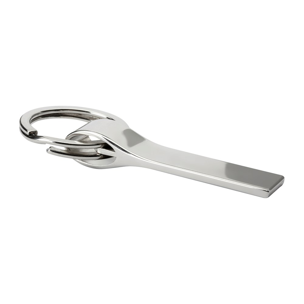 Dieser glänzende Schlüsselanhänger überzeugt durch einen praktischen Mechanismus, der das Öffnen des Schlüsselrings erleichtert. Die Öffnungshilfe befindet sich im ovalen Bereich des Schlüsselanhängers, in dem der Schlüsselring befestigt ist. Um diesen zu öffnen, setzen Sie einfach die kleine, spitze Vorrichtung zwischen die Karabinerhaken ein. So können Sie Schlüssel mühelos und fingernagelschonend anbringen. Mit einer Lasergravur wird der Schlüsselanhänger zum edlen, exquisiten Werbeträger.