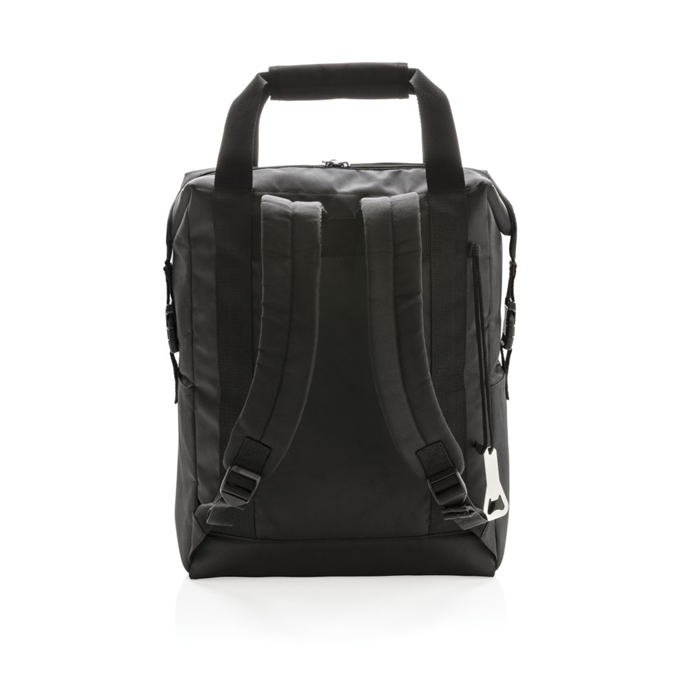 Kühltasche aus 1680D und 600D Polyester mit extra großem Hauptfach, zusätzlicher Vortasche und doppelt verstärkten Henkeln sowie inkl. Flaschenöffner. Für bis zu 28 Dosen. PEVA Isolierung.
