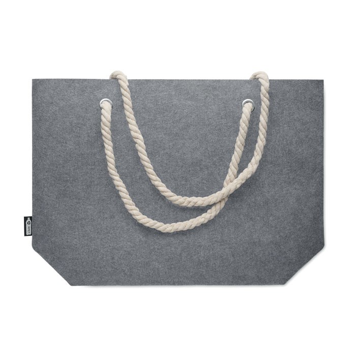 Einkaufs- oder Strandtasche aus RPET-Filz mit Kordelgriff. Filzstärke: 2 mm.