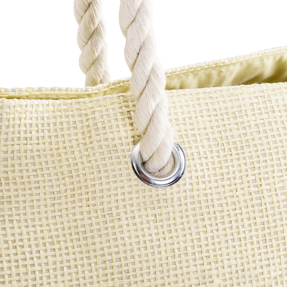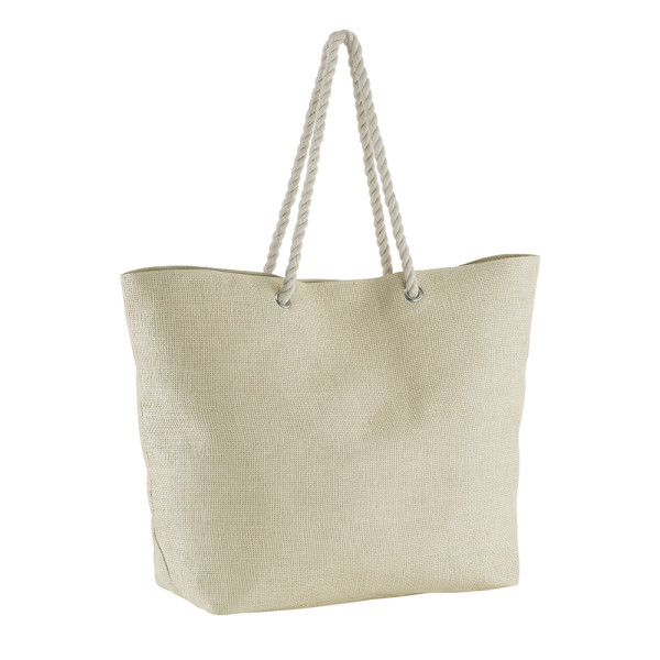 Die Freizeittasche besteht aus Papier mit einem Polyester-Innenfutter. Sie hat die Maße ca. 39 x 58 x 19 cm (H/B/T) und ein Volumen von ca. 40 l. Das offene Hauptfach wird mit einem Magnetknopf verschlossen. Ideal für den täglichen Gebrauch oder Ausflüge, bietet die Tasche viel Stauraum und ist gleichzeitig praktisch und stylisch.