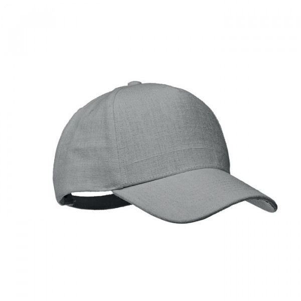 Baseball Kappe. 5 Panele. 100% Hanfgewebe 370g/m². Messing-Schnalle mit Einstecklasche. Fünf farblich abgestimmte, umstickte Belüftungslöcher. Größe 7 1/4.