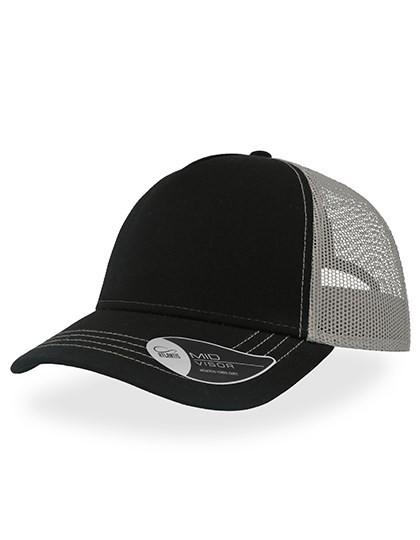 100% Baumwoll-Canvas, Seite und Rückseite: 100% Polyester | Fünf Segmente | Leicht gebogener Schirm (Mid Visor) | Mesh hinten | Vier Ziernähte auf dem Schirm