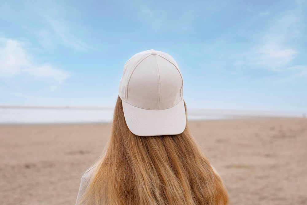 6-teilige Mütze aus Mikro Wildleder mit Metallschnalle.