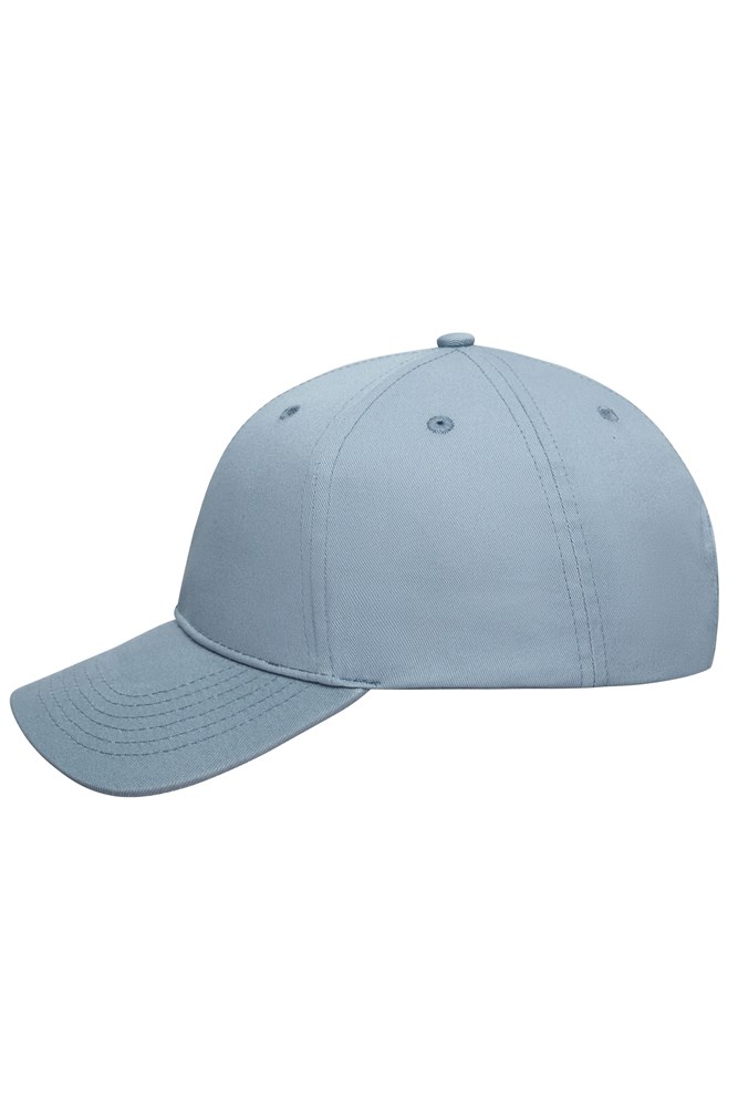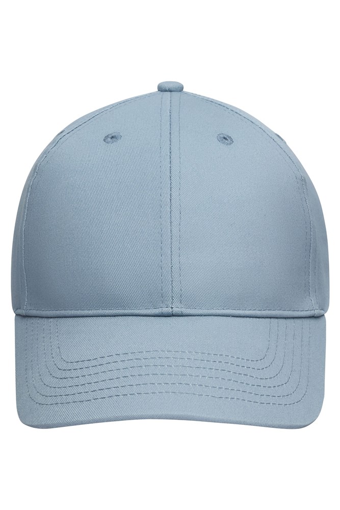 6 gestickte Luftlöcher 6 Ziernähte am Schild Laminierte Frontpanels Angenehmer Tragekomfort durch gefüttertes Schweißband Clipverschluss in mattsilber mit Metallöse Bio Baumwolle Caps zum Bedrucken Verschluss: Clip 6 Panel Cap Frontpannel: laminiert