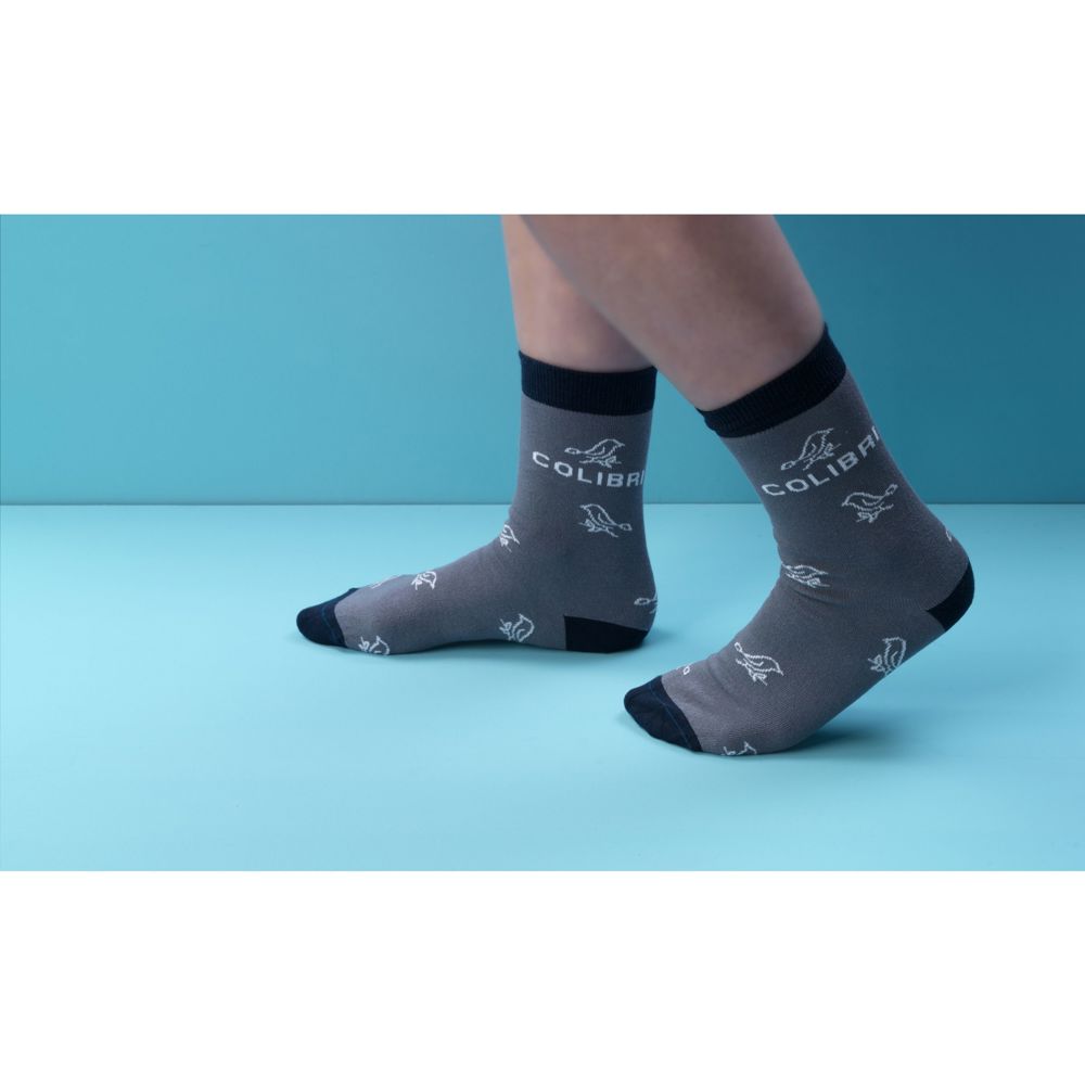 Bequeme Socken der Marke Kingly. Diese hochwertigen Socken werden aus ethisch vertretbaren Materialien hergestellt und bestehen aus einer Mischung aus 80% gekämmter Baumwolle, 17% recyceltem Polyamid und 3% Elasthan. Sie bieten eine eng anliegende, angenehme Passform mit verstärkten Fersen- und Zehenzonen für eine längere Lebensdauer. Die Socken können mit einem individuell gestrickten Design in bis zu 6 Farben personalisiert werden. Auswahl aus 160 Garnfarben. Die Socken werden paarweise mit einem recycelten Etikett verpackt, das mit Ihrem eigenen Full-Colour-Design bedruckt werden kann - so entstehen Socken, die perfekt zu Ihrer Markenidentität passen. Erhältliche Größen: M 36–39 und L 40–46. Mindestbestellmenge: 50 Paar pro Größe und pro Design. OEKO-TEX® 24001333 zertifiziert. Hergestellt in Europa. ZUSÄTZLICHE INFORMATIONEN: Die angegebenen PMS-Farben werden mit den verfügbaren Garnen so genau wie möglich angenähert. Aufgrund von Materialunterschieden kann eine exakte Farbübereinstimmung nicht garantiert werden.