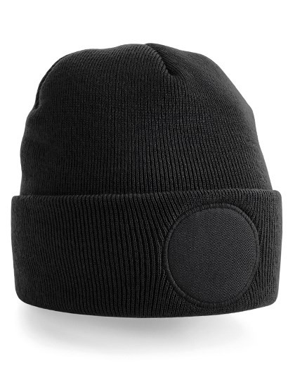 100 % Soft-Touch Polyacryl | Abreißetikett für einfaches Rebranding | Doppellagiger Strick | Baumwoll-Twill-Aufnäher zum Veredeln | Dekorationsfläche: 6 cm Durchmesser