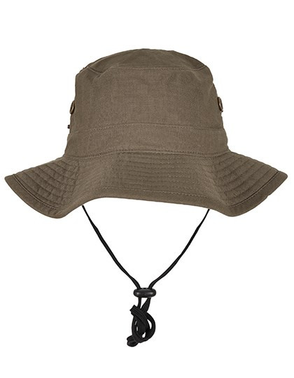 Breite flache Krempe | Ziernähte | Belüftungs-Ösen aus Metall | Hutschnur mit Stopper
