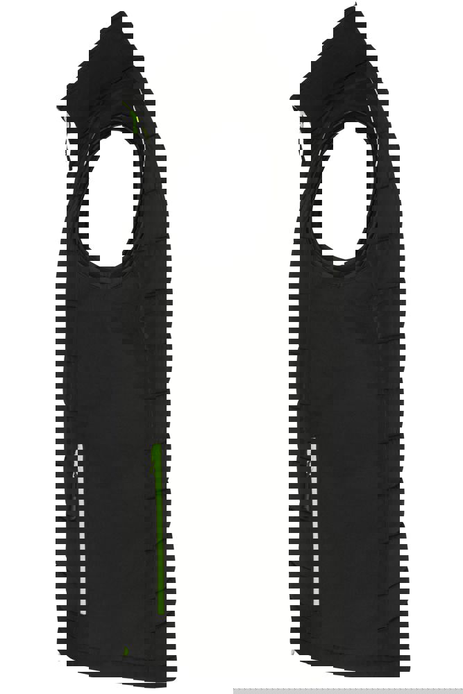 Pflegeleichtes 2-Lagen Softshellmaterial kombiniert mit gesteppten Einsätzen im Vorder- und Rückenteil