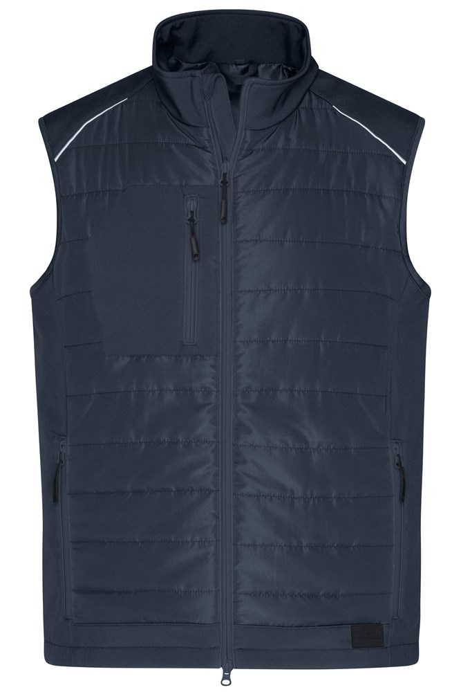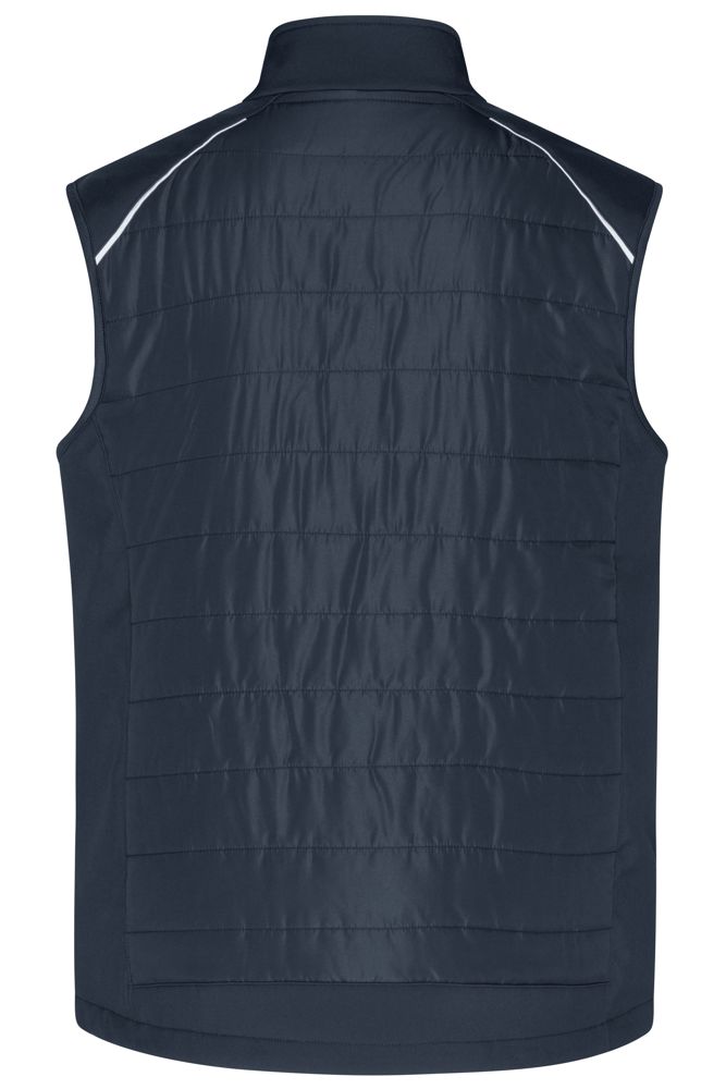 Pflegeleichtes 2-Lagen Softshellmaterial kombiniert mit gesteppten Einsätzen im Vorder- und Rückenteil