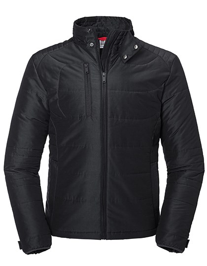 Moderne, körperbetonte Passform | Hoch belastbares DWR-Gewebe mit Aquapel von Nanotex® behandelt | Fluor- und PFC-frei | Nachhaltige Wattierung von Dupont™ Sorona® | Stehkragen mit zwei Druckknöpfen und Windschutzblende gegen Wind und Zugluft | Umgekehrte Reißverschlüsse (Reißverschlussspirale innenliegend) in der Mitte, an Brusttasche, Seitentaschen und Ärmeln | Innentasche mit Reißverschluss | Dekorative Ärmellasche mit Druckknopf | Diskreter Veredelungszugang im inneren, linken Brustbereich