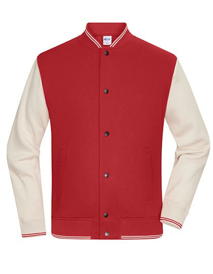 Hochwertige Sweat-Qualität mit angerauter Innenseite | Materialmix aus gekämmter, ringgesponnener BIO-Baumwolle und recyceltem Polyester | Kragen und Bündchen mit Kontraststreifen | Kragen, Armbündchen und Bund mit Elasthan | 2 seitliche Eingrifftaschen | Frontverschluss mit Druckknöpfen