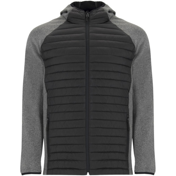 Unisex Jacke Zwei-Stoff-Kombination. Nicht abnehmbare Kapuze. Raglanärmel. Ärmel, Seiten und Kapuze aus Softshell-Material. Gestepptes Gewebe, Federtakt auf Vorder- und Rückenteil. Umgekehrter Reißverschluss mit Kinnschutz und Zipper. Zwei Fronttaschen mit Reißverschluss. Elastische Bündchen an Kragen, Ärmeln und Saum. Herausnehmbares Etikett. Winddichtes Modell. Das männliche Modell ist 184 cm groß und trägt Größe L, das weibliche Modell ist 179 cm groß und trägt Größe S.