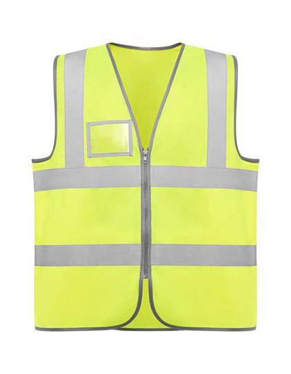 Warnweste mit Frontreißverschluss | Zwei horizontale Warnstreifen an der Brust und vertikale an den Schultern | Transparente Tasche auf der rechten Brust für ID-Tag | EU-zertifiziert nach EN ISO 13688:2013 und EN ISO 20471:2013/A1:2016 Klasse II | Dies ist ein Artikel zur Persönlichen Schutzausrüstung (PSA). Gemäß EU-Verordnung 2016/425 über persönliche Schutzausrüstung ist eine EU-Konformitätserklärung seitens des Herstellers Pflicht. Diese stellen wir Ihnen auf Anfrage gerne zur Verfügung.