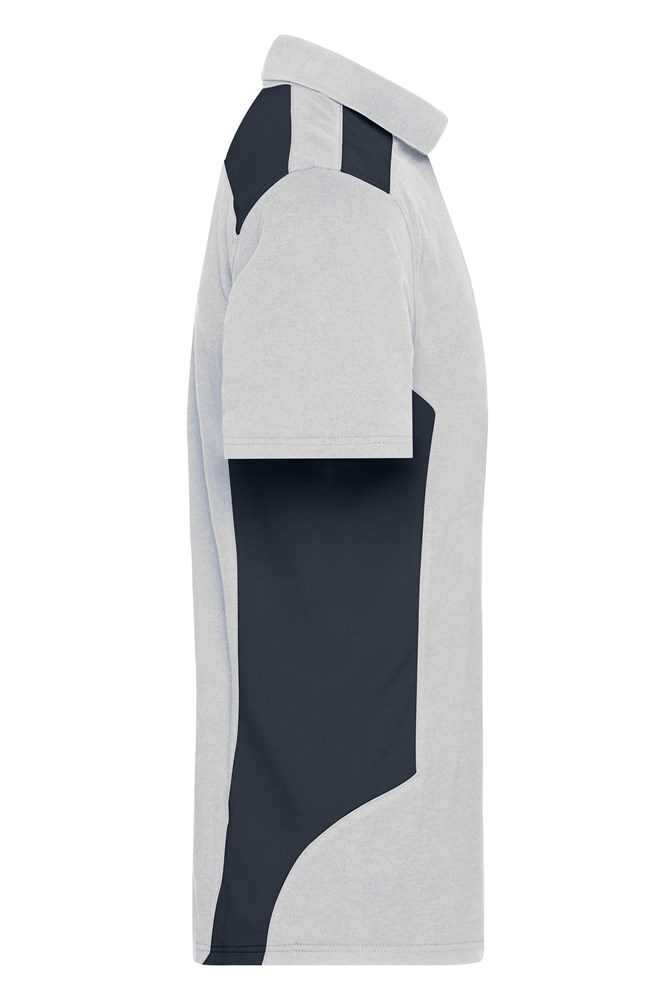 Materialmix aus gekämmter, ringgesponnener BIO-Baumwolle und recyceltem Polyester für optimale Form- und Waschbeständigkeit Kontrastfarbige Einsätze an Seite und Schulter Gestrickter Polokragen, Necktape Knopfleiste mit 3 Knöpfen 60°C waschbar, trocknergeeignet 1/2 Oberweite: 48 cm Länge ab Schulter: 70 cm Ärmel Länge: 22 cm Work-Level: STRONG OEKO-TEX® Standard 100 (25.HDE.51239) Große Größen Größen bis 6XL Waschbar mit 60°C Bio Baumwolle OCS Standard blended GRS Standard