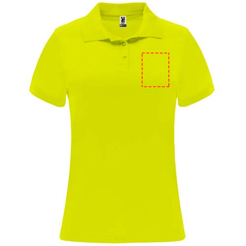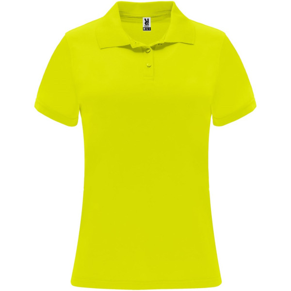 Kurzärmeliges Funktions-Poloshirt für Damen. Gestrickter Kragen mit 3-Knopfleiste. Figurbetonte Passform. Atmungsaktives, leicht zu waschendes und zu trocknendes Material. Herausnehmbares Etikett. Technisches Gewebe. Atmungsaktiver Stoff. Das Modell ist 173 cm groß und trägt Größe S.