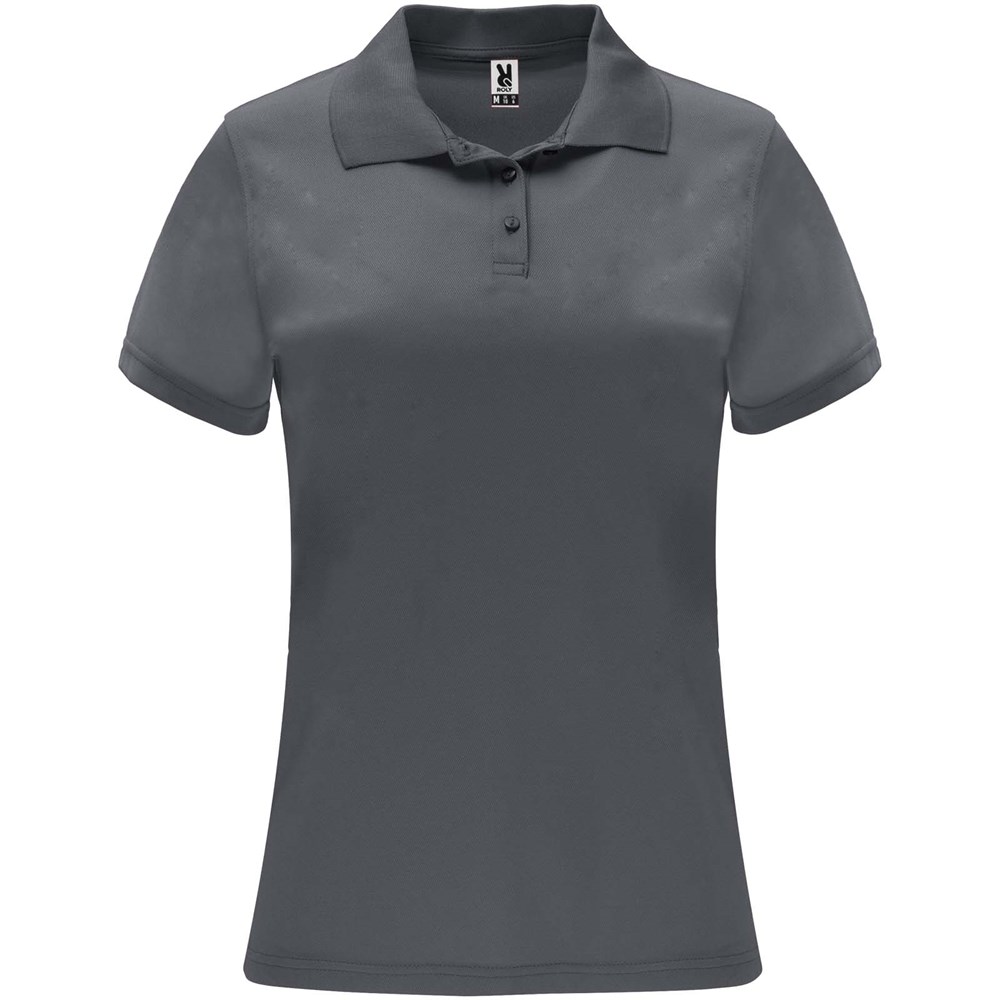 Kurzärmeliges Funktions-Poloshirt für Damen. Gestrickter Kragen mit 3-Knopfleiste. Figurbetonte Passform. Atmungsaktives, leicht zu waschendes und zu trocknendes Material. Herausnehmbares Etikett. Technisches Gewebe. Atmungsaktiver Stoff. Das Modell ist 173 cm groß und trägt Größe S.