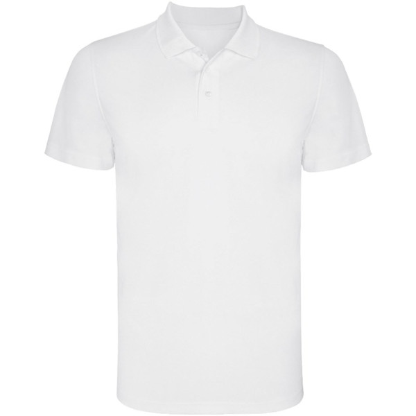 Kurzärmeliges Funktions-Poloshirt. Gestrickter Kragen mit 3-Knopfleiste. Atmungsaktives, leicht zu waschendes und zu trocknendes Material. Herausnehmbares Etikett. Technisches Gewebe. Atmungsaktiver Stoff.