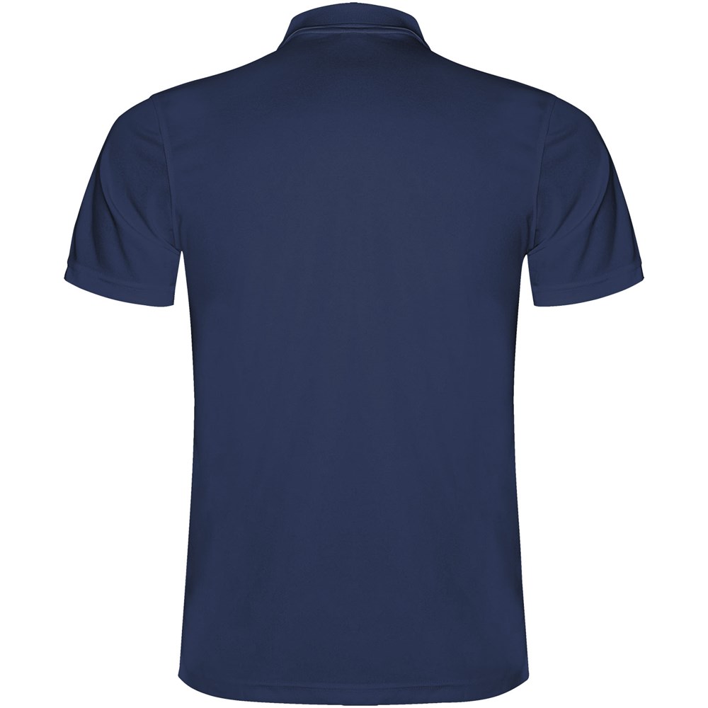 Kurzärmeliges Funktions-Poloshirt. Gestrickter Kragen mit 3-Knopfleiste. Atmungsaktives, leicht zu waschendes und zu trocknendes Material. Herausnehmbares Etikett. Technisches Gewebe. Atmungsaktiver Stoff.