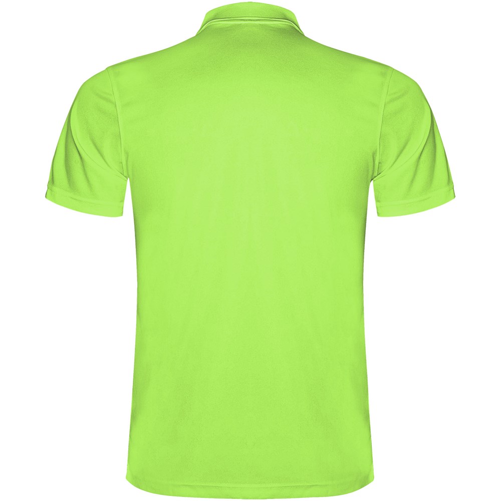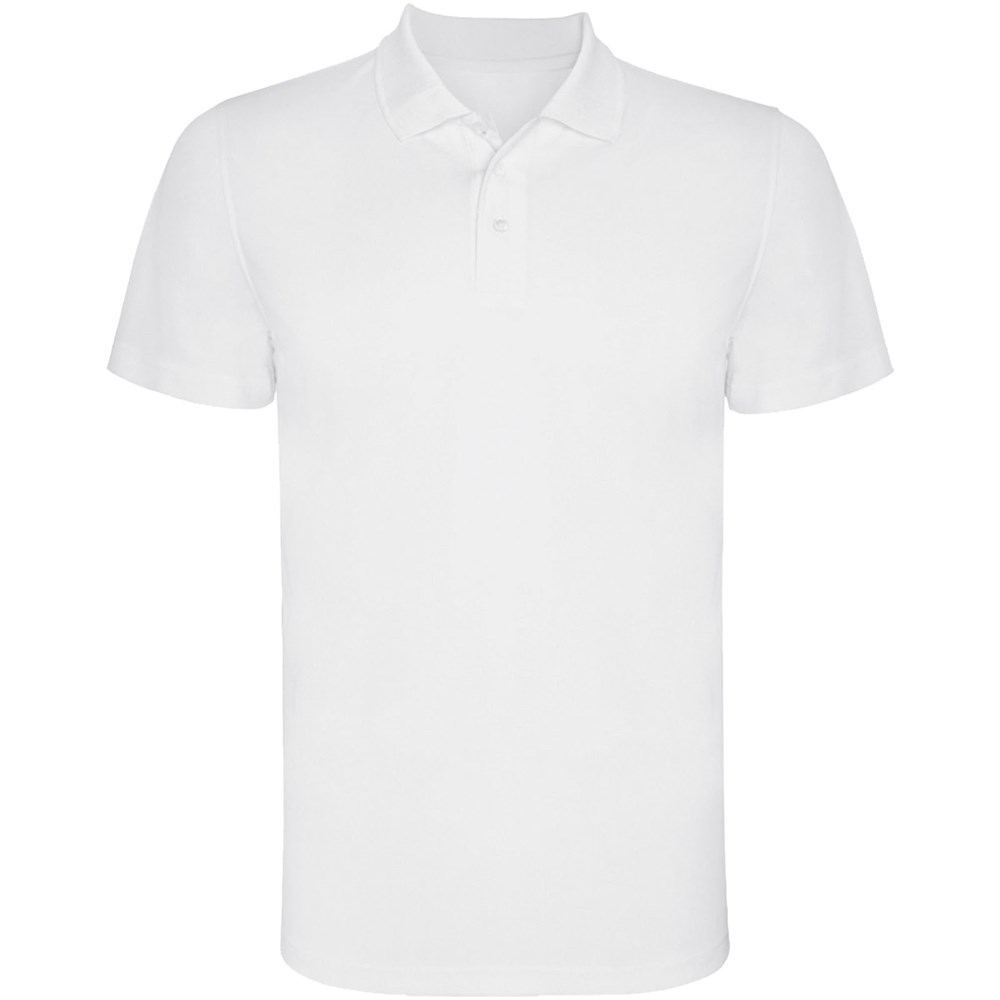 Kurzärmeliges Funktions-Poloshirt. Gestrickter Kragen mit 3-Knopfleiste. Atmungsaktives, leicht zu waschendes und zu trocknendes Material. Herausnehmbares Etikett. Technisches Gewebe. Atmungsaktiver Stoff.