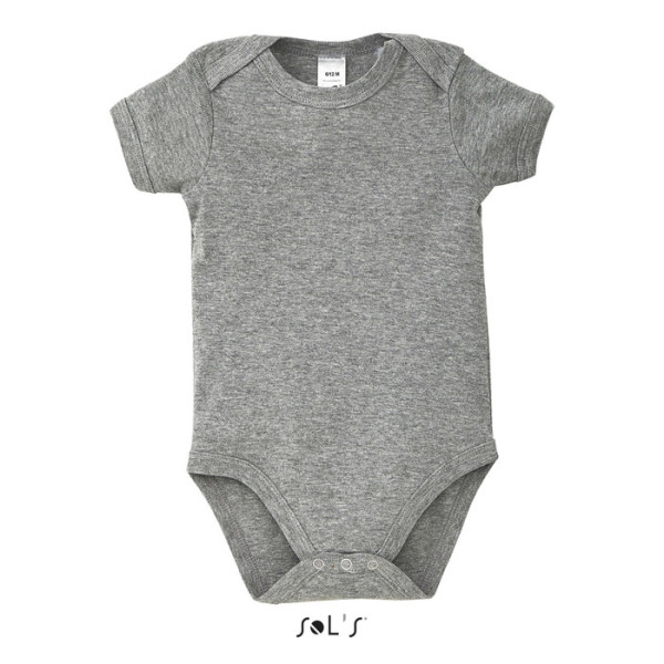 SOL'S BAMBINO, Baby-Body, 100% gekämmte, ringgesponnene Baumwolle, Rippstrick 1x1 180, Kragen, Bündchen und Beinabschluss, Kappenärmel, Druckknopfverschluss unten. Zur Größenanpassung bitte die Größentabelle in der Produktdokumentation beachten.