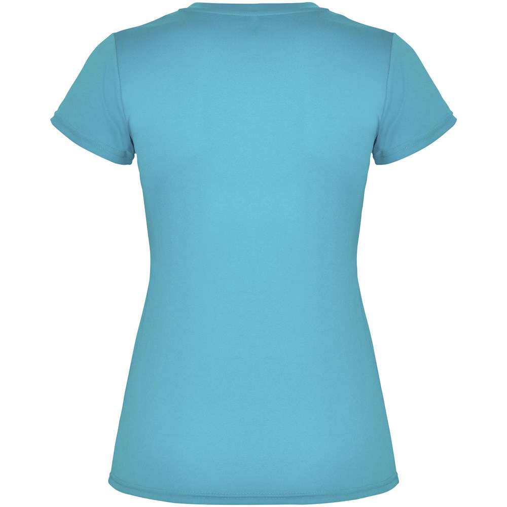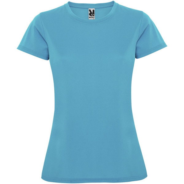 Kurzärmeliges Funktions-T-Shirt mit Raglanärmeln. Rundhalsausschnitt mit verdeckten Nähten. Figurbetontes T-shirt. Atmungsaktiver Stoff, leicht zu waschen und zu trocknen. Herausnehmbares Etikett. Technisches Gewebe. Ultravioletter Schutzfaktor. Das Modell ist 174 cm groß und trägt Größe S.