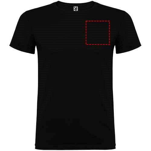 Kurzärmeliges T-Shirt mit doppellagigem Rundhalsausschnitt aus Elasthan, hergestellt aus schlauchförmigem Material für Erwachsene. Verstärkte und verdeckte Nähte am Kragen. Herausnehmbares Etikett. Das Modell ist 190 cm groß und trägt Größe L.