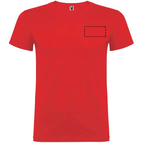 Kurzärmeliges T-Shirt mit doppellagigem Rundhalsausschnitt aus Elasthan, hergestellt aus mit Seitennähten. Verstärkte und verdeckte Nähte am Kragen. Herausnehmbares Etikett. Das Modell ist 120 cm groß und trägt Größe 5/6.
