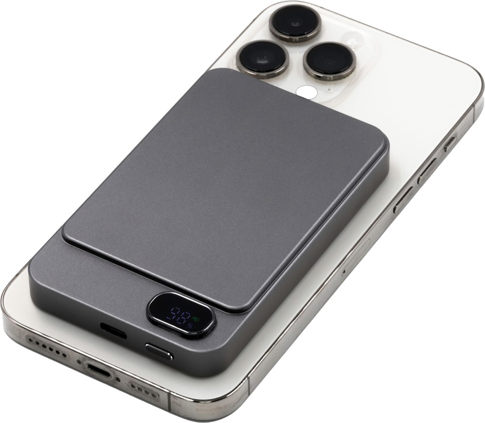 Die Powerwave 5000 mAh Powerbank verfügt über ein schlankes Aluminium-Unibody-Design, das leicht in jede Tasche passt. Mit einer Kapazität von 5.000 mAh unterstützt sie 15 W magnetisches kabelloses Laden (MagSafe, Qi1 & Qi2) für einfaches, kabelloses Laden. Außerdem verfügt es über einen 20-W-USB-C-Anschluss (PD 3.0), um Laptops oder andere Geräte bei Bedarf aufzuladen. Das LCD-Display zeigt Akkustand und Ladestatus an, während ein intelligenter Chip Schutz vor Überstrom, Überladung, Überhitzung und Kurzschluss bietet. Mit Magnetverschluss für eine schnelle und sichere Befestigung.