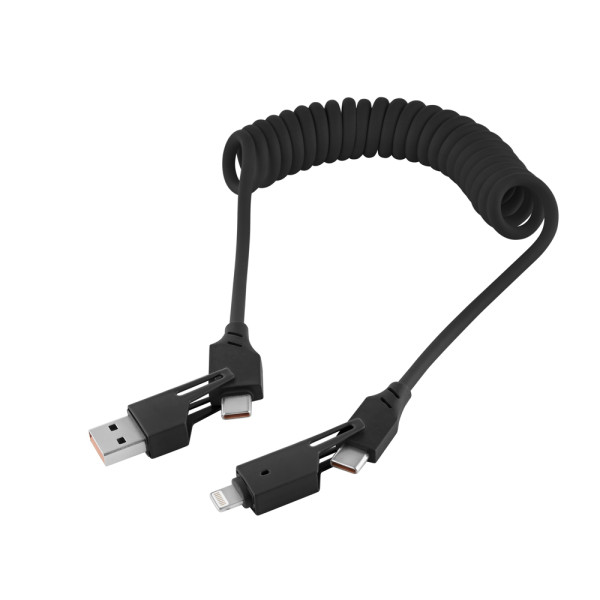 „Kompakt, kraftvoll, immer zur Hand - Das PowerTwist4X ist das kompakte, spiralförmige Ladekabel für unterwegs. Mit 65 Watt Leistung, schnellem Datentransfer und einem universellen 4-in-1-Anschlusssystem bietet es maximale Flexibilität und Effizienz, wo auch immer Sie sind. Dank der kompakten Spiralform passt es in jede Tasche und ist jederzeit einsatzbereit. Im recycelten CraftPaperDesign Karton.