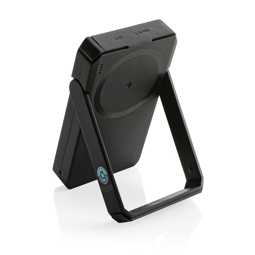 5.000mAh Solar-Powerbank aus RCS-zertifiziert recyceltem ABS. Gesamter recycelter Inhalt: 21% bezogen auf das Gesamtgewicht des Artikels. Die RCS-Zertifizierung gewährleistet eine vollständig zertifizierte Lieferkette für die recycelten Materialien. Die Powerbank verwendet hochwertige monokristalline Solarzellen mit einer Umwandlungsrate von 19%. Die Ladegeschwindigkeit hängt von den Umgebungsdedingungen ab. Mit integrierter Standfunktion, um die Solarzellen in einem optimalen Winkel zu verwenden. Die Powerbank enthält eine langlebige 5.000 mAh A-Grade Lithium-Batterie. Mit kabellosem, magnetischem 10W-Ladegerät zum kabellosen Aufladen Ihres Telefons. Aufladegeschwindigkeit Solar: 5V/130mA. Inout Type-C: 5V/2A. Output: USB A: 5V/2A; Type-C: 5V/2A. Artikel und Zubehör PVC-frei. Inklusive RCS-zertifiziert recyceltem TPE-Ladekabel. Verpackt in FSC®-Mix-Verpackung. Registered Design®.