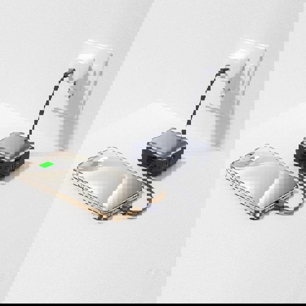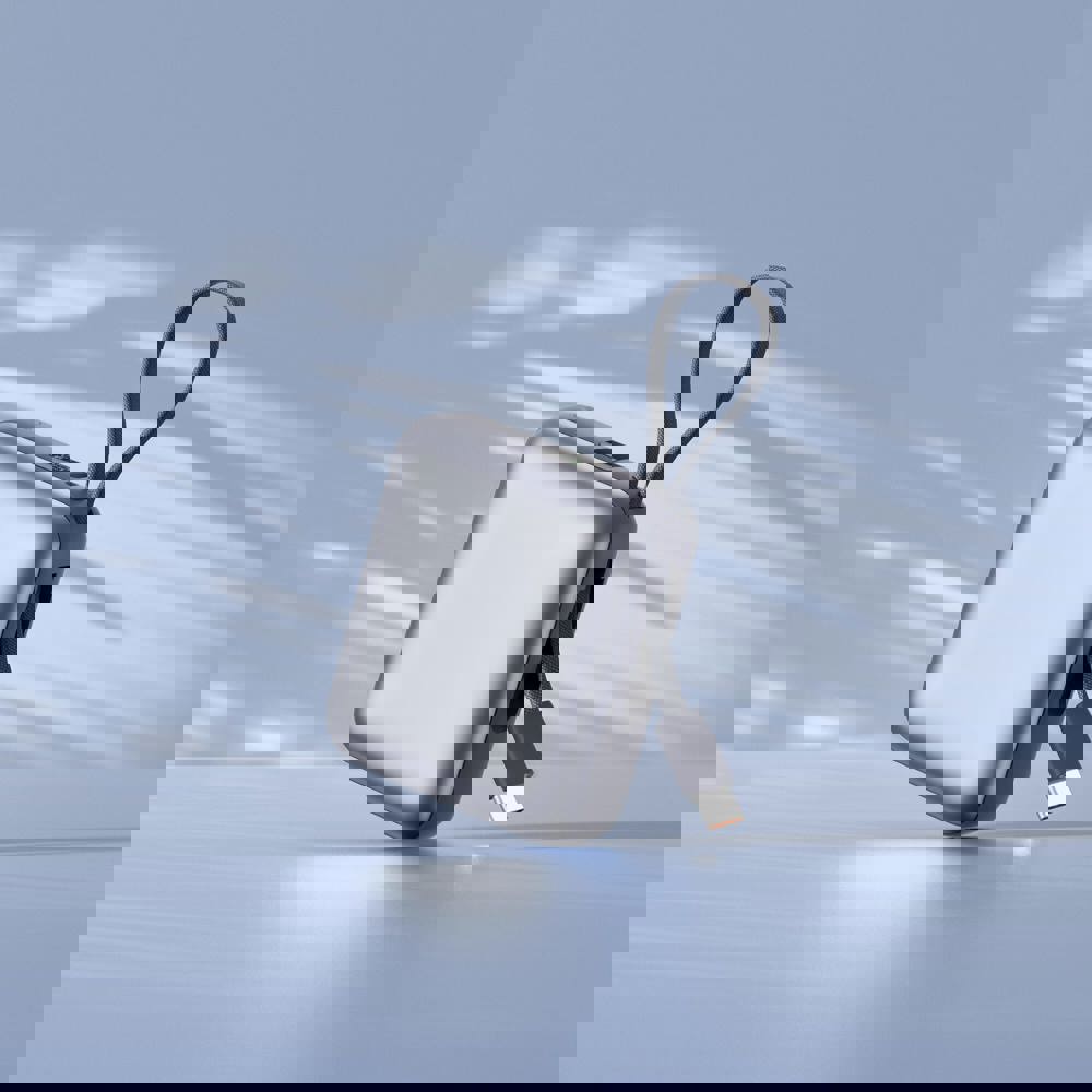 Die Nova Powerbank vereint Leistung und Effizienz in einem kompakten Design. Ausgestattet mit integrierten USB-C- und Lightning-Kabeln liefert sie 22,5 W Schnellladung mit Power Delivery. Ihre Kapazität von 10.000 mAh gewährleistet eine lange Nutzungsdauer und das LED-Display zeigt den Akkustatus in Echtzeit an. Eine Lösung für den Energiebedarf unterwegs.